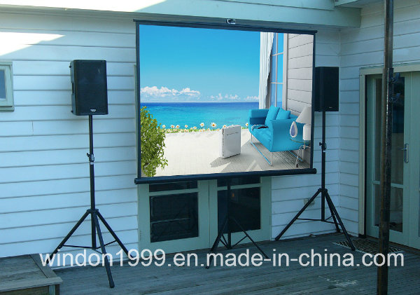 Schermi di proiezione del treppiedi essere durevole, compatto, leggero e facile da usare. Il funzionamento è flessibile e l'altezza dello schermo può essere registrata using il sistema chiudente nel treppiedi. È egualmente molto pratica per la trasferibilità ed il trasporto. Facile installare - tir suare semplicemente lo schermo e prende poco spazio. Facilità di memoria anche. Ci è tipo basamento di B&E del treppiedi per sceglie. Lo schermo è ampiamente usato nelle sale riunioni, in banchi, nelle presentazioni esterne ecc.